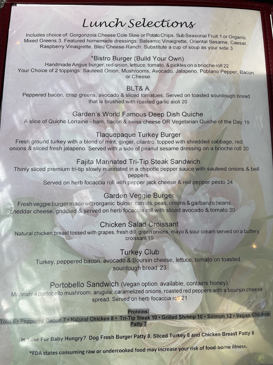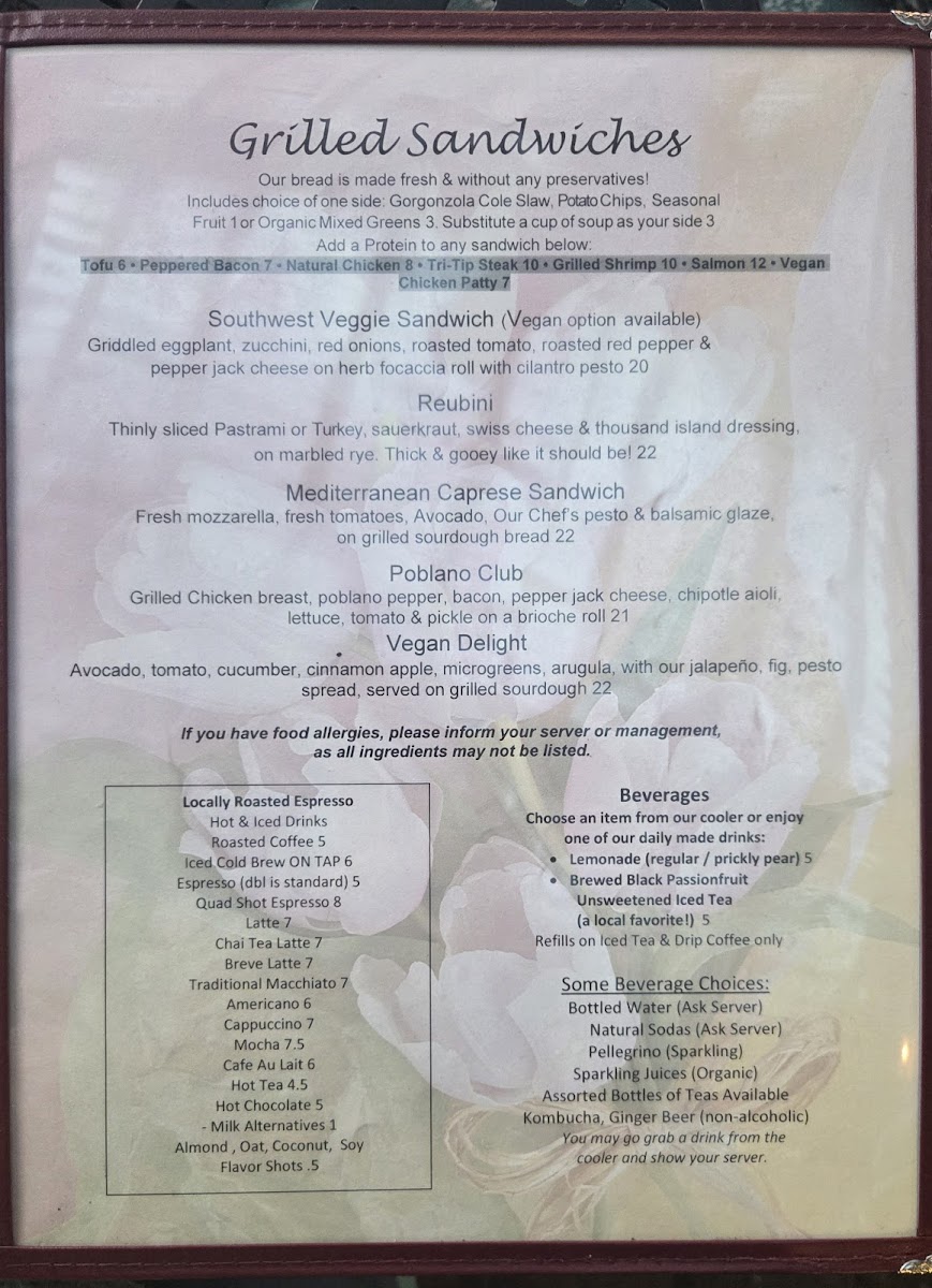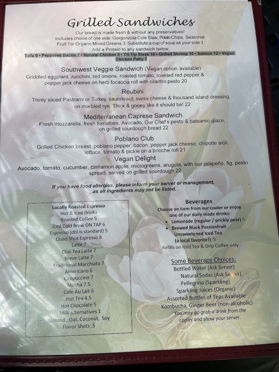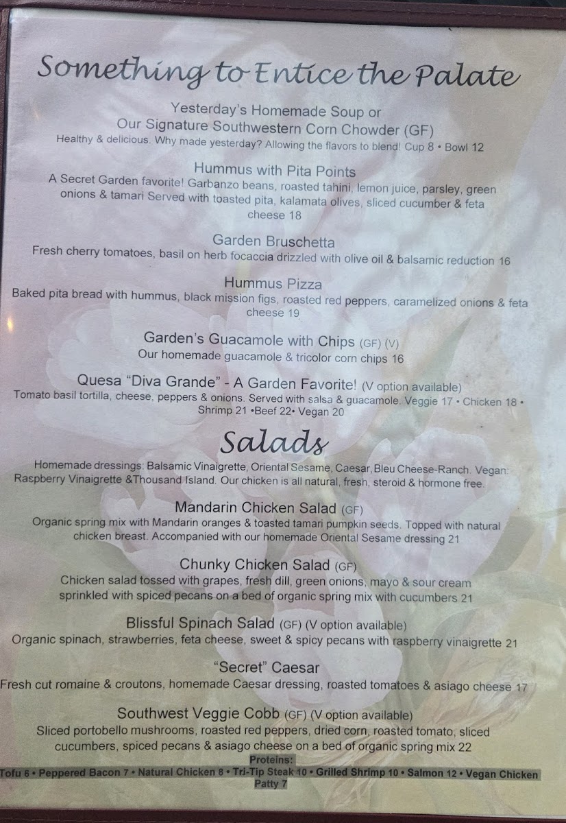 At The Secret Garden Cafe, you’ll find a delightful selection of dishes that perfectly blend local flavors with a touch of comfort. Nestled in the heart of Sedona, this cozy spot offers a menu brimming with fresh, locally sourced ingredients. Whether you're in the mood for a light bite or a hearty meal, there’s something for every palate. The cafe’s offerings are made with love, from flavorful sandwiches and wraps to savory salads and satisfying soups. For those with a sweet tooth, don’t miss their decadent desserts-each one a treat you’ll remember. With a warm atmosphere and delicious food, The Secret Garden Cafe is the perfect place to unwind and enjoy a bite.